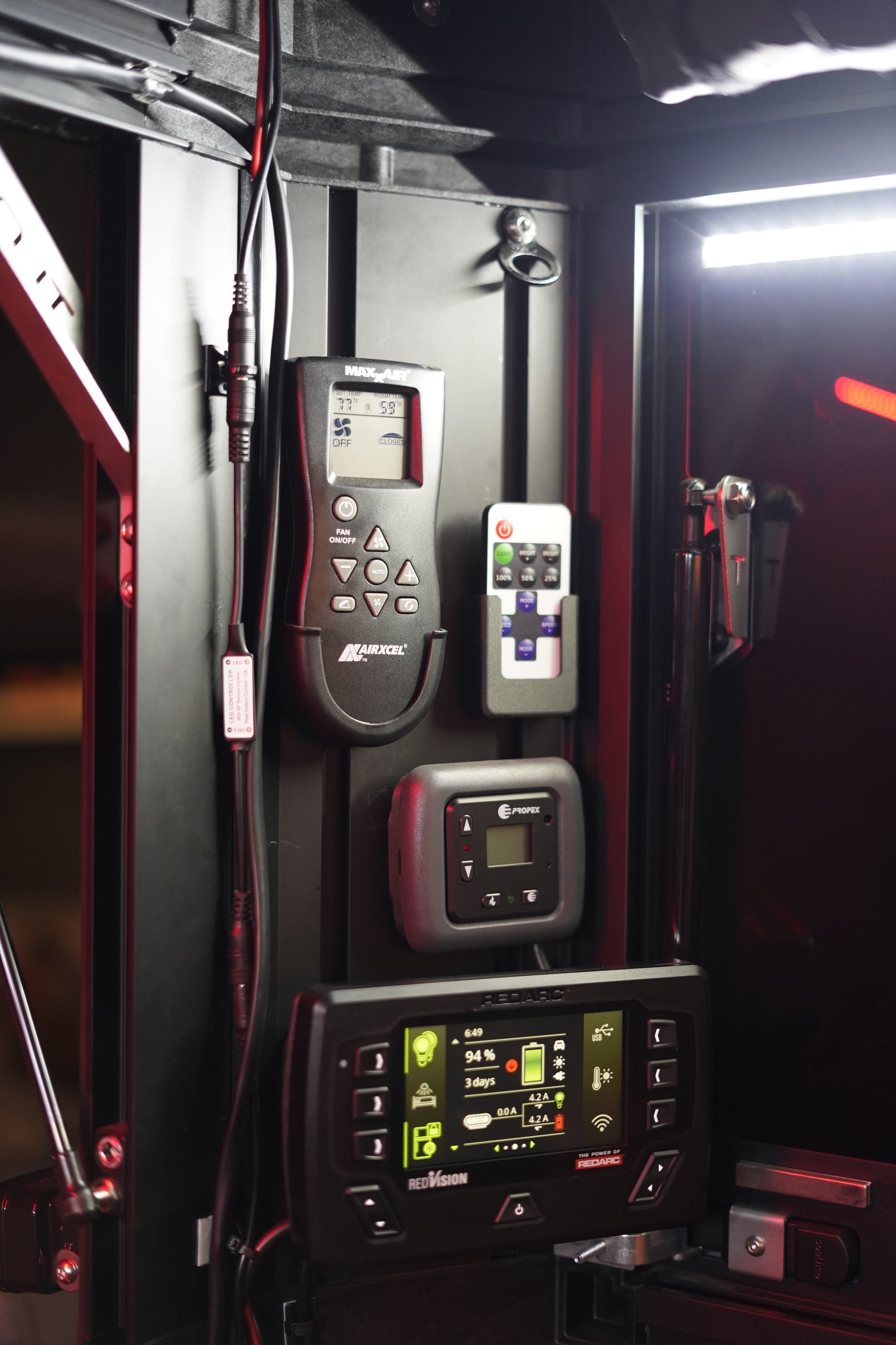 Propex digital thermostat mount for the Tune M1 Camper. Attaches to inner T-Track and allows wires to come out of the bottom. Custom designed and printed with carbon infused nylon, ensuring years of durability.
